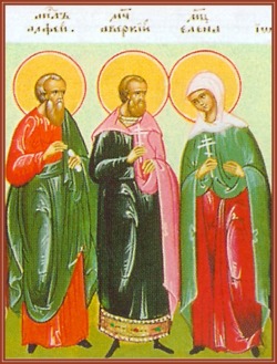 Святые мученики Аверкий и Елена, по преданию, были детьми святого апостола Алфея. За исповедание веры в Иисуса Христа святой Аверкий был привязан нагим среди пчельника и мученически скончался от укусов пчел. Сестра его, святая Елена, была побита камнями.