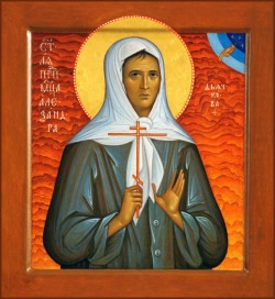 Saint Alexandra, born in 1893 in the village of Chernogolovka of the Ivanovo district, was given the opportunity to serve in the Holy Trinity Alexander Nevsky Monastery. After the closure of the monastery in 1927, she returned to her homeland, but soon moved to Akatovo, where she continued her spiritual life. In 1931, she was arrested and sentenced to five years in a labor camp for 'agitation against collective farming.' Released in 1934, Alexandra continued to serve God, working in the Church of the Nativity of the Mother of God. However, in 1938, she was arrested again and sentenced to death. Saint Alexandra was condemned to death on March 14, 1938, and she was buried in an unmarked grave at the Butovo firing range near Moscow.