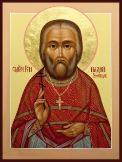 Saint Gennady (Zdorovtsev) was born in 1868 in the family of a clergyman. In 1888, he graduated from the Yaroslavl Theological Seminary and served in the churches of the Lyubim district until 1907, after which he was transferred to the Yaroslavl Cathedral. In 1914, he became the rector of the Vladimir Church in the city of Yaroslavl. His diligent service was repeatedly noted with awards. Father Gennady served in the Vladimir city church until his martyr's death, being shot on July 5, 1918, under unknown circumstances.