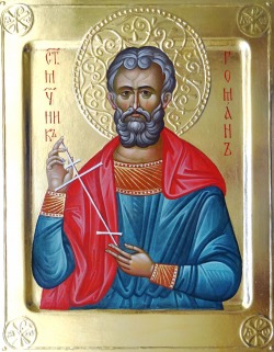Saint Martyr Roman, deacon of the Caesarean church, lived in Antioch during the persecutions of Christians. He urged the faithful to defend the Christian temple from the wicked eparch Asclepiades, who wanted to destroy it. Roman reproached the pagans and, when he was captured, boldly confessed Christ despite severe tortures.