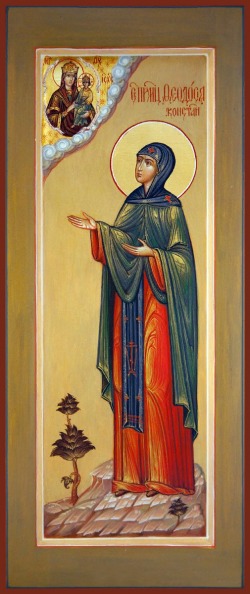 Έζησε τον 8ο αιώνα. Γεννήθηκε από τις θερμές προσευχές των γονιών της και, μετά τον θάνατό τους, ανατράφηκε σε γυναικείο μοναστήρι στην Κωνσταντινούπολη αφιερωμένο στην Αγία Μάρτυρα Αναστασία. Αποδέχθηκε τη μοναστική ζωή μετά τη διανομή των υπολειμμάτων της κληρονομιάς των γονιών της στους φτωχούς, μέρος της οποίας χρησιμοποίησε για να γράψει εικόνες του Σωτήρα, της Μητέρας του Θεού και της Μάρτυρος Αναστασίας. Κατά τη διάρκεια της βασιλείας του Λέοντα του Ισαύρου, σφοδρού διώκτη των εικονολατρών, εκδόθηκε διάταγμα για την καταστροφή των αγίων εικόνων. Στην Κωνσταντινούπολη υπήρχε μια χάλκινη εικόνα του Σωτήρα, την οποία ο ψευδοπατριάρχης-εικονομάχος Αναστάσιος διέταξε να αφαιρεθεί. Η σεβάσμια μάρτυρας, μαζί με άλλες μοναχές, έτρεξε να υπερασπιστεί την εικόνα, γι' αυτό και φυλακίστηκε. Για μια εβδομάδα υπέστη εκατό χτυπήματα, και την όγδοη ημέρα, αφού ξυλοκοπήθηκε άγρια, την οδήγησαν μέσα από την πόλη. Ένας από τους στρατιώτες της προκάλεσε θανάσιμο τραύμα, από το οποίο πέθανε. Το σώμα της θάφτηκε με ευλάβεια από τους Χριστιανούς στο μοναστήρι του Διοκριτίου στην Κωνσταντινούπολη, και ο τόπος ταφής έγινε διάσημος για πολλές θεραπείες των ασθενών.