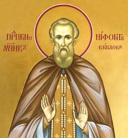 Ο ιερομόναχος Νιφόντ γεννήθηκε το 1882 στην πόλη Γέισκ σε μια φτωχή οικογένεια αγροτών. Το 1913, μετακόμισε στο χωριό Ποντλέςνογιε στον γνωστό ιεραπόστολο ιερομόναχο Αντώνιο, όπου εισήλθε στο μοναστήρι και ενεδύθη το μοναχικό σχήμα. Από το 1925, υπηρέτησε στην εκκλησία του χωριού Μπερεζόβι Χούτορ μέχρι τη σύλληψή του στις 28 Δεκεμβρίου 1930. Το τοπικό τμήμα του ΟΓΠΟΥ έστειλε αστυνομικούς για να συλλάβουν τον ιερέα, ωστόσο, παρά τις διαμαρτυρίες των πιστών, συνελήφθη και τοποθετήθηκε στη φυλακή στην πόλη Σιζράν.