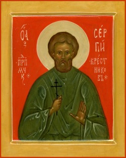 Άγιος Σέργιος (Σέργιος Αλεξάντροβιτς Κρεστνίκοβ) γεννήθηκε στις 1 Ιουλίου 1893 στη Μόσχα. Αφού ολοκλήρωσε το σχολείο, το 1905 εισήλθε στη Μονή Ποκρόβσκι στη Μόσχα, όπου τραγουδούσε στη χορωδία μέχρι το 1915. Στη συνέχεια, για δύο χρόνια τραγούδησε στις χορωδίες των εκκλησιών της Μόσχας, και το 1918 έγινε δόκιμος στη Λαύρα Τριάδος-Σέργιου, όπου έζησε μέχρι το κλείσιμο της μονής το 1922. Μετά από αυτό, υπηρέτησε στην εκκλησία Πιατνίτσκα στη Σέργιεβ Ποσάντ, και από το 1928 ήταν ψάλτης στην εκκλησία στο Κουκουγιέβσκι Κοιμητήριο, όπου ήταν θαμμένος ο γέροντας Αλέξιος (Σολοβιόβ).
