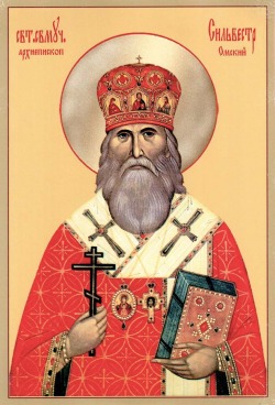 Άγιος Σιλβέστρος, Αρχιεπίσκοπος Ομσκ και Παυλοδάρ, γεννήθηκε στις 31 Μαΐου 1860 στο χωριό Κοσόβνο της επαρχίας Κιέβου. Αποφοίτησε από την Θεολογική Σχολή και την Ακαδημία του Κιέβου, έγινε ενοριακός ιεραπόστολος και στη συνέχεια δέχθηκε την ιερή τάξη το 1892. Το 1910, έλαβε μοναχικές υποσχέσεις με το όνομα Σιλβέστρος και σύντομα έγινε αρχιμανδρίτης. Χειροτονήθηκε Επίσκοπος Πριλούκης το 1911, αργότερα έγινε Επίσκοπος Τσελιάμπινσκ και Αρχιεπίσκοπος Ομσκ και Παυλοδάρ. Το 1918, ηγήθηκε της Προσωρινής Εκκλησιαστικής Διοίκησης στη Σιβηρία. Συνελήφθη στις 6 Φεβρουαρίου 1918 και αποδέχθηκε μαρτυρικό τέλος στις 13 Φεβρουαρίου 1920 στο Ομσκ. Αγιοποιήθηκε μεταξύ των Νέων Μαρτύρων και Ομολογητών της Ρωσίας τον Αύγουστο του 2000.