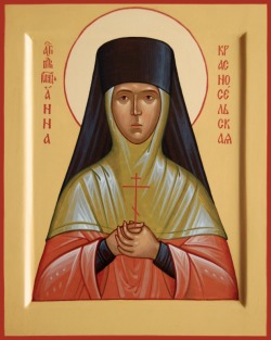 Sfânta Anna s-a născut pe 5 noiembrie 1892, în satul Konstantinovo, provincia Vladimir. În 1914, a intrat ca novice în Mănăstirea Alekseevsky din Moscova, unde a slujit în bucătărie. În 1924, mănăstirea a fost închisă, iar novicele Anna a trăit cu măicuțele într-un apartament, câștigându-și existența prin cusut pături.