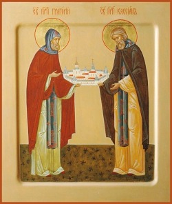 Preacuviosul Ștefan, monah al Lavrei Kiev-Pecersk, a întemeiat mănăstirea Makhriș. Proprietarul de pământ Grigore, oferindu-i moșia sa, s-a făcut călugăr acolo. Ștefan l-a hirotonit pe Grigore ca preot, dar acesta a fost trimis într-o țară îndepărtată pentru asceză. Frații Iurkovski, temându-se de pierderea pământurilor lor, au început să-l persecute pe Ștefan, iar el, părăsind mănăstirea, a plecat cu Grigore într-o țară necunoscută. Au ajuns la râul Suhona, unde au construit o biserică în cinstea Sfintei Treimi și alta în cinstea marelui mucenic Gheorghe. Mănăstirea a început să prospere datorită donațiilor generoase ale proprietarului local de pământ Konstantin Dmitrievič, care s-a făcut și el călugăr sub numele de Casian.