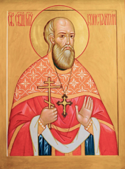 Sfântul Mucenic Constantin s-a născut pe 9 aprilie 1872 în satul Alexeyevskoe, provincia Moscova, într-o familie de psalmist, Vasili Uspenski. În 1892, a absolvit Seminarul Teologic din Moscova și a devenit profesor la școala Nikolai-Bogoyavlensky. În 1895, a fost hirotonit preot și numit la Biserica Nikolskaya. Părintele Constantin a slujit mai bine de patruzeci de ani, arătând grijă față de parohie și ajutând locuitorii locali. În anii 1930, au început persecuțiile împotriva Bisericii, iar părintele Constantin a fost supus opresiunii. Pe 6 noiembrie 1937, el și fiul său Boris au fost arestați. Părintele Constantin a fost împușcat pe 25 noiembrie 1937, iar Boris a primit o pedeapsă de zece ani. Părintele Constantin este îngropat într-un mormânt fără nume la poligonul Butovo, lângă Moscova. Boris Uspenski a murit în Siblag pe 15 decembrie 1942.