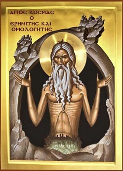 Preacuviosul Cosma, eunuc din Lavra Faransky, a fost un postitor strict și un râvnitor al credinței, foarte bine cunoscător al Sfintei Scripturi. A venit în Antiohia, unde a trecut curând la cele veșnice. Trupul său a fost îngropat în mănăstirea patriarhului Grigorie. Un sărman, vindecat prin rugăciunile bătrânului, a mărturisit despre ajutorul său și că vorbește în fiecare noapte cu episcopul, avertizându-l de erezie.