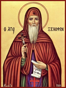 Sfântul Xenofon, soția sa Maria și fiii lor Arsenie și Ioan, erau cetățeni de seamă ai Constantinopolului, trăind în secolul al V-lea. În ciuda bogăției lor, se distingeau prin simplitatea sufletească și inima bună. Trimițându-și fiii la Beirut pentru educație, au suferit un naufragiu și au fost aruncați pe țărm în locuri diferite. Amândoi frații, întristându-se de despărțire, s-au dedicat lui Dumnezeu și au îmbrățișat viața monahală. Părinții nu au primit vești despre copiii lor timp de multă vreme și credeau că au fost pierduți, dar Xenofon a păstrat speranța în Domnul și a mângâiat-o pe Maria. După câțiva ani, făcând un pelerinaj la Ierusalim, cuplul s-a întâlnit cu fiii lor, care se nevoiau în diferite mănăstiri. Bucuroși, au mulțumit Domnului pentru reunirea familiei. Venerabilii Xenofon și Maria, dedicându-și restul vieții lui Dumnezeu, au luat și ei voturi monahale. Arsenie și Ioan, luându-și rămas bun de la părinți, au plecat în pustie, unde au devenit renumiți pentru darurile lor de minuni și discernământ. Venerabilii bătrâni Xenofon și Maria, nevoindu-se în tăcere și post strict, au primit de la Dumnezeu darul minunilor.