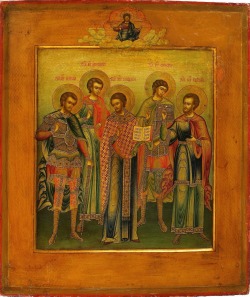 Святі мученики Евстрацій, Авксенцій, Євгеній, Мардарій та Орест постраждали за Христа за імператора Діоклетіана в Севастії, Вірменія. Пресвітер Авксенцій, ув'язнений, став одним із перших християн, які зазнали мук. Святий Евстрацій, таємний християнин і благородний воєначальник, відкрив свою віру і зазнав жорстоких катувань, після чого був спалений. Авксенція обезголовили. Святий Мардарій, з простого народу, також сповідав свою віру і був повішений вниз головою, молячись перед смертю. Святому Євгенію вирвали язик, відрубали руки і ноги, і відсікли голову. Молодий воїн Орест, який сповідував себе християнином, був засуджений до спалення на розпеченому залізному ложі, на яке він зійшов, підкріплений молитвою святого Евстрація. Святий Евстрацій відійшов у вічність 13 грудня.